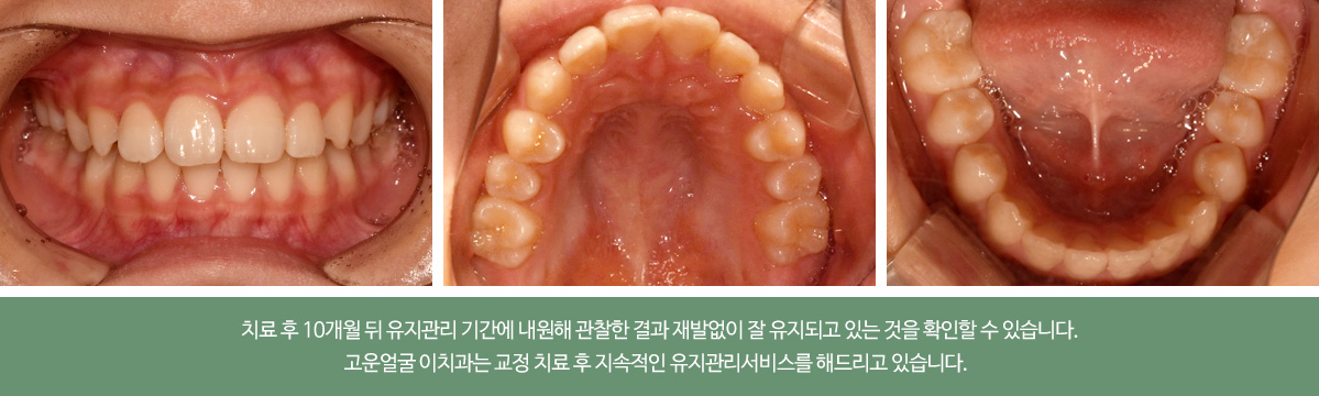 치아가 바르게 배열되고 영구치 맹출 공간도 안정적으로 확보되면 치료를 종료하고 유지장치를 장착합니다.