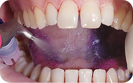 치아 표면의 세균막을 EMS 에어플로우® MAX에서